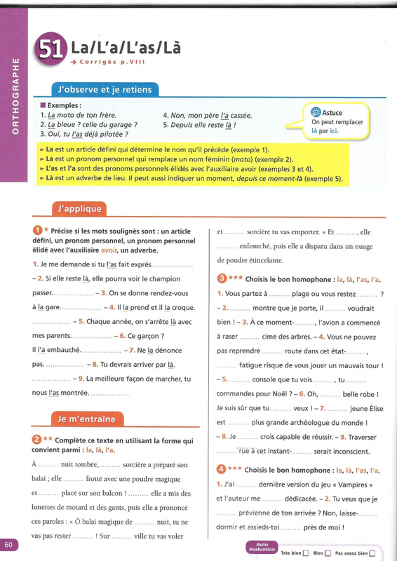 Homophones : la/là/l'a/l'as