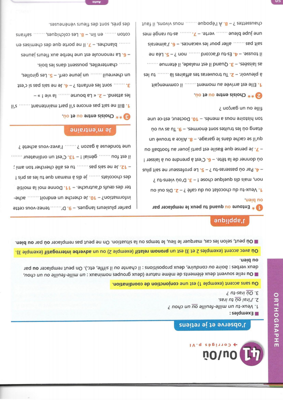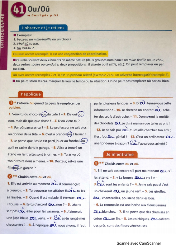 1) Corriger la fiche concernant les homophones ou/où, refaire les exercices si vous avez fait plus de deux erreurs et réviser la règle.