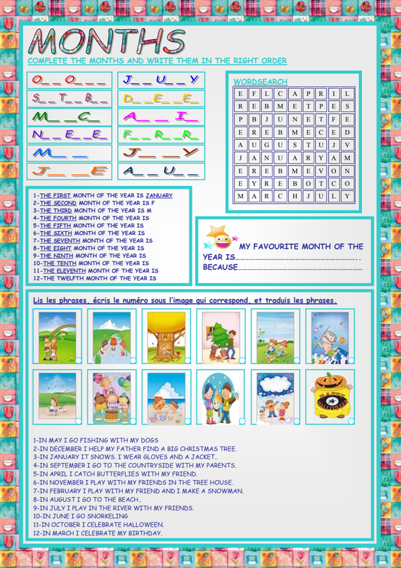 Ensuite un document à compléter sur les mois de l'année: MONTHS