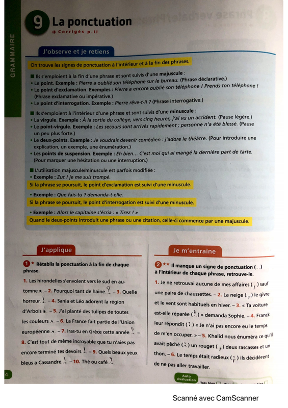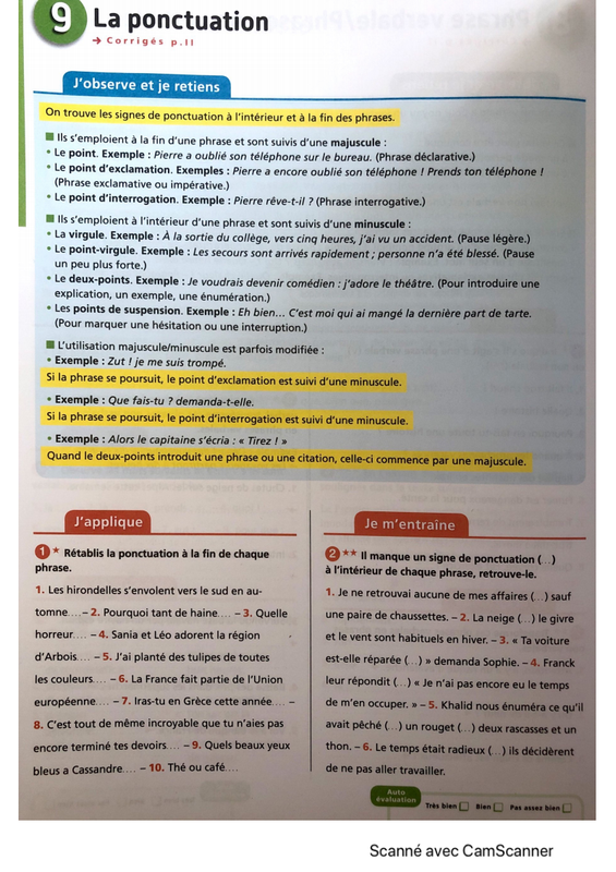 1) Corriger la fiche concernant la ponctuation et réviser l'encadré en bleu (à faire le mardi 9 juin).