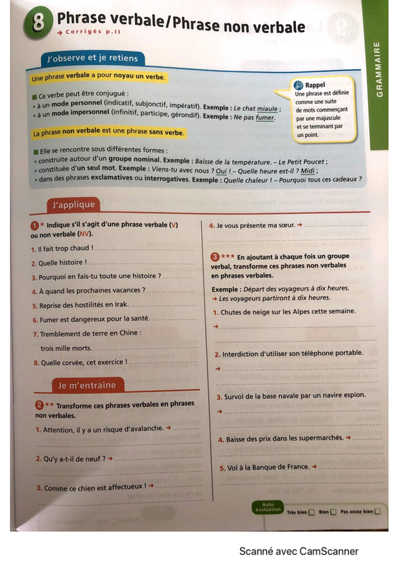 3) Corriger la fiche concernant les phrases verbales et non verbales et réviser l'encadré en bleu (à faire le mercredi 10 juin).