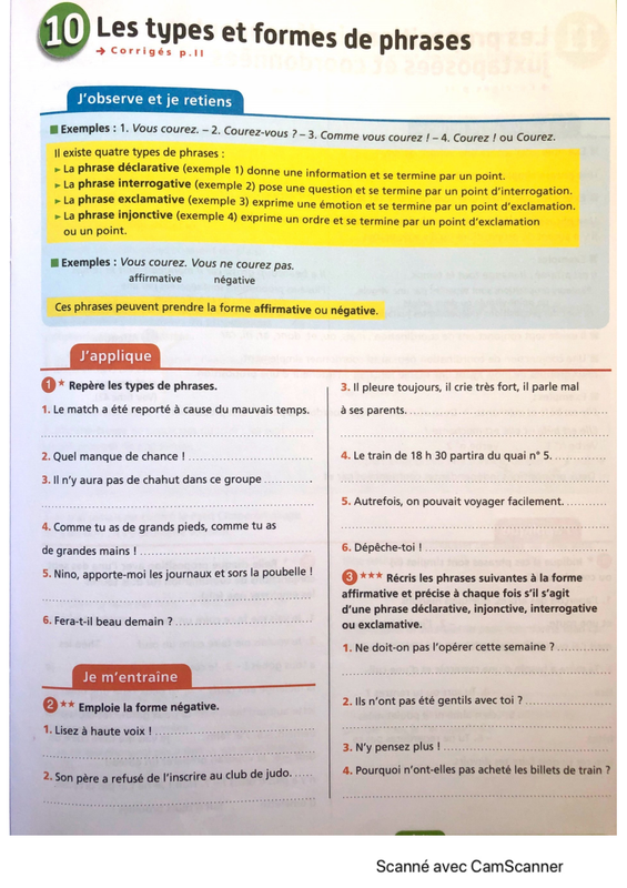 2) Corriger la fiche sur les types et formes de phrases (à faire le mardi 9 juin).