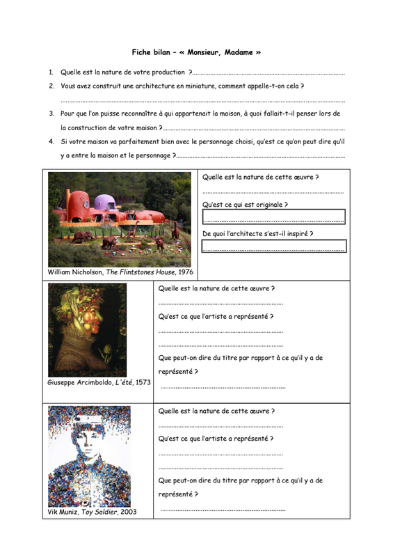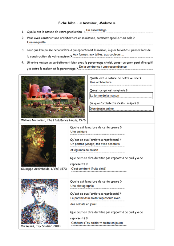 Demande : En vous basant sur les personnages de la série de livres "Monsieur, Madame", construisez la maquette de la maison du Monsieur ou de la Madame de votre choix.